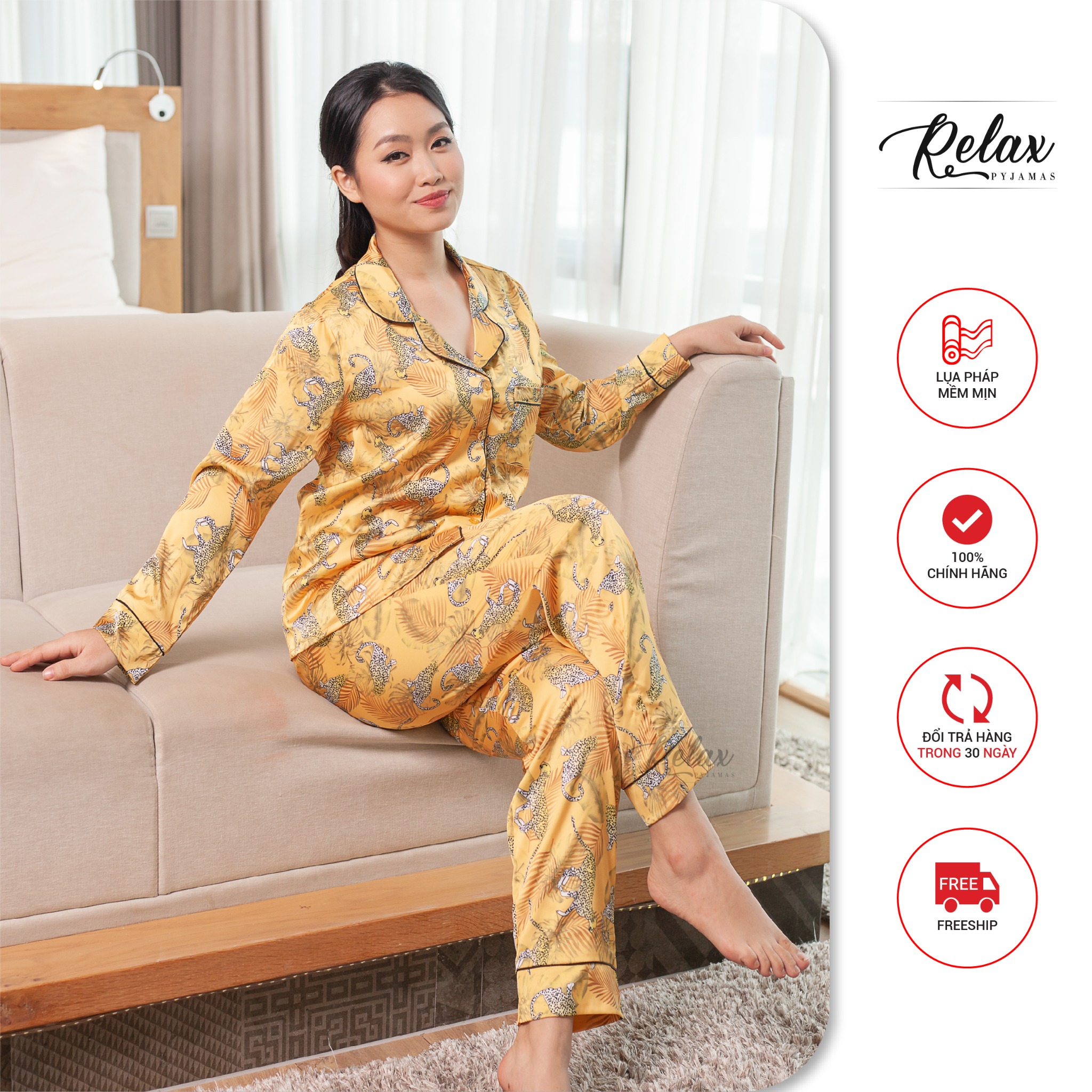 Đồ mặc nhà pyjama tay dài quần dài họa tiết HW1004-HT Vàng đồng KHUYẾN MÃI - ƯU ĐÃI